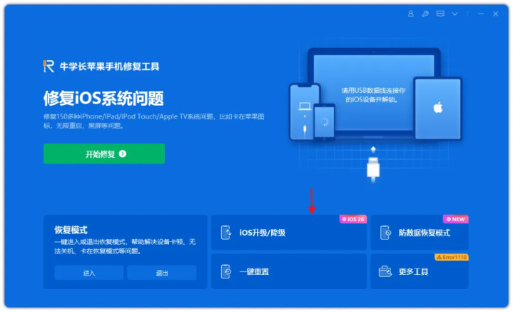 方法2:也可以使用牛学长苹果手机修复工具一键升级iOS26.2正式版本