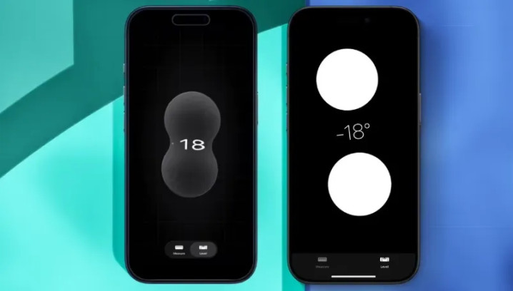 测距仪、水平仪改用全新玻璃动画,比如水平仪会显示两个可互动的 “液态水滴”;